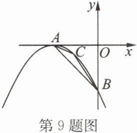 9. 如图,抛物线 $ y = a(x + 1)^2 $ 的顶点为 $ A $,与 $ y $ 轴的负半轴交于点 $ B $,且 $ S_{\triangle AOB} = \frac{1}{2} $。