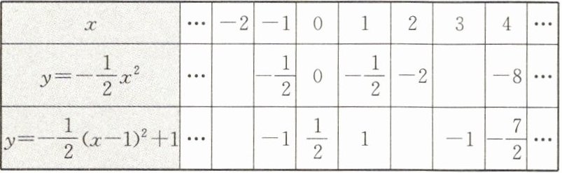 例 1 在同一直角坐标系内画出下列二次函数的图象:$ y = -\frac{1}{2}x^2 $,$ y = -\frac{1}{2}(x - 1)^2 + 1 $。