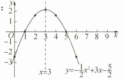 例 3 在平面直角坐标系中,画出二次函数 $ y = -\frac{1}{2}x^2 + 3x - \frac{5}{2} $ 的图象,并根据图象回答下列问题: