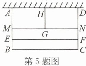 5. 如图,某小区有一块靠墙(墙的长度不限)的矩形空地$ ABCD $. 为美化环境,用总长为$ 100 cm $的篱笆围成四块矩形花圃(靠墙一侧不用篱笆,篱笆的厚度不计). 若四块矩形花圃的面积相等,设$ BC 的长度为 x m $,矩形区域$ ABCD 的面积为 y m^{2} $.
