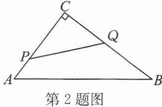 2. 如图,在$ \triangle ABC $中,$ \angle C = 90^{\circ} $,$ AB = 10 cm $,$ BC = 8 cm $,点$ P 从点 A 沿 AC 向点 C 以 1 cm/s $的速度运动,同时点$ Q 从点 C 沿 CB 向点 B 以 2 cm/s $的速度运动(点$ Q 运动到点 B $停止). 在运动过程中,四边形$ PABQ $的面积的最小值为______