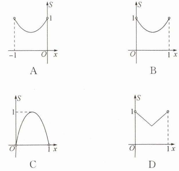 4. 如图所示,已知正方形$ ABCD $的边长为1,$ E $,$ F $,$ G $,$ H $分别为各边上的点,且$ AE = BF = CG = DH $,设小正方形$ EFGH 的面积为 S $,$ AE 为 x $,则$ S 关于 x $的函数的图象大致是(