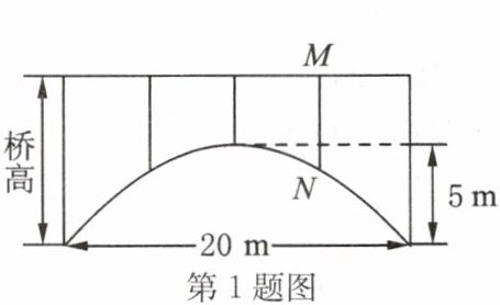1. 一座拱桥的轮廓是抛物线形,如图所示,拱高为 $ 5m $,跨度长 $ 20m $,相邻两支柱间的距离均为 $ 5m $。若支柱 $ MN $ 的高度为 $ 3.25m $,则桥高为