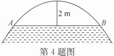 4. 如图所示,有一抛物线形拱桥,当水位线在 $ AB $ 位置时,拱桥离水面 $ 2m $,水面宽 $ 4m $,求水面下降 $ 1m $ 后,水面的宽。