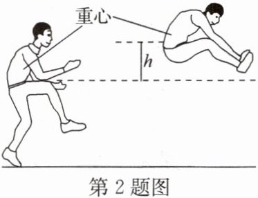 2. 如图所示,小敏在今年的校运动会跳远比赛中跳出了满意的成绩,函数 $ h = 3.5t - 4.9t^2 $ 可以描述他跳跃时重心高度 $ h $(单位:$ m $)随时间 $ t $(单位:$ s $)的变化关系,由此可知他起跳后重心到达最高时所用的时间 $ t $ 约为(