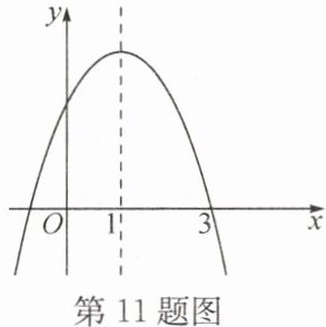 11. 若二次函数 $ y = -x^{2} + 2x + k $ 的部分图象如图所示,则关于 $ x $ 的一元二次方程 $ -x^{2} + 2x + k = 0 $ 的一个解为 $ x_{1} = 3 $,另一个解为 $ x_{2} = $