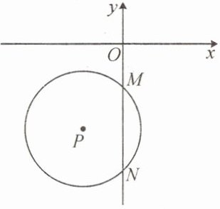 连接PM,过P点作PQ⊥y轴交y轴于点Q,MN=10-4=6,则MQ=3,而PM=5,