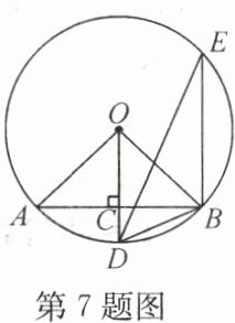7. 如图,$ AB $ 是弦,$ OD \perp AB $,垂足为 $ C $,点 $ E $ 在 $ \odot O $ 上.