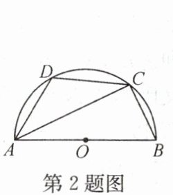 2. 如图,已知 $ AB $ 是半圆 $ O $ 的直径,$ \angle BAC = 30^{\circ} $,$ D $ 是 $ \overset{\frown}{AC} $ 的中点,则 $ \angle DAC = $