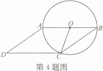 4. 如图,以□ABCD的一边为直径作⊙O,⊙O过点C,若∠AOC= 70°,那么∠BAD= (