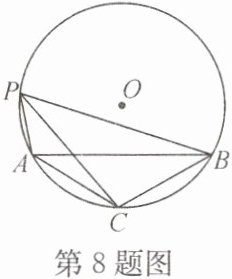 8. 如图,点P是⊙O上的一个动点,AB= $\sqrt{3}$,PC是∠APB的平分线,∠BAC= 30°.