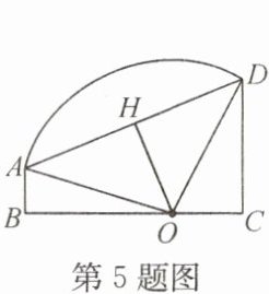 5. 如图所示,梯形ABCD中,AB//DC,AB⊥BC,AB= 2cm,CD= 4cm,以BC上一点O为圆心的圆经过A,D两点,且∠AOD= 90°,则圆心O到AD的距离OH等于(