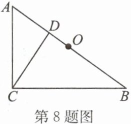 8. 如图,在△ABC中,∠ACB = 90°,AB = 10,BC = 8,CD⊥AB于D,O为AB的中点。