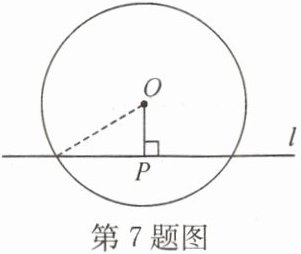 7. 如图,过圆心O作OP⊥l,P为垂足,A,B,C为直线l上三个点,且PA = 2cm,PB = 3cm,PC = 4cm,若⊙O的半径为5cm,OP = 4cm,试判断A,B,C三点与⊙O的位置关系。