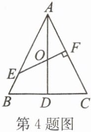 4. 如图,△ABC中,AB = AC,AD是∠BAC的平分线,EF是AC的垂直平分线,交AD于点O。若OA = 3,则△ABC外接圆的面积为(