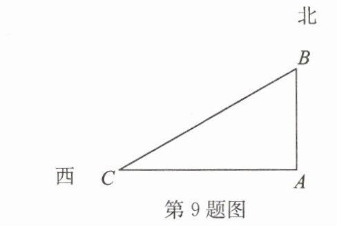 9. 如图,在A岛附近,半径约为250km的范围内是暗礁区,往北300km处有一灯塔B,往西400km处有一灯塔C,现有一艘渔船沿CB方向航行,问渔船是否会触礁,请说明理由。