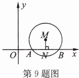 9. 如图,在平面直角坐标系中,点$M$在第一象限内,$MN \perp x轴于点N$,$MN = 1$,$\odot M与x轴交于A(2,0)$,$B(6,0)$两点。