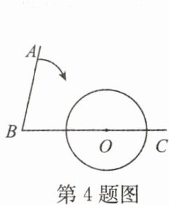 4. 如图,$\angle ABC = 80^{\circ}$,$O为射线BC$上一点,以点$O$为圆心,$\frac{1}{2}OB长为半径作\odot O$,要使射线$BA与\odot O$相切,应将射线$BA绕点B按顺时针方向旋转的度数\alpha =$