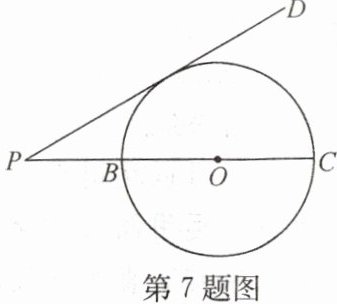 7. 如图,$\angle DPC = 30^{\circ}$,$O为PC$上一点,以$O$为圆心,$2为半径作\odot O$,交$PC于B$,$C$两点,设$PB = x$,当$x$为何值时,$\odot O与PD$相切?