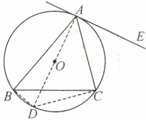 2 如图,已知△ABC内接于⊙O,AE为⊙O的切线,求证:∠CAE= ∠ABC.【思路导析】连接OA,并延长AO交⊙O于点D,证∠EAC= ∠ADC即可.