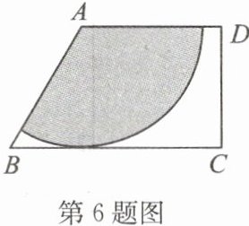 6. 如图,在梯形 $ A B C D $ 中,$ A D // B C $,$ \angle C= 90^{\circ} $,$ \angle B A D= 120^{\circ} $,$ A B= A D= 4 $,$ B C= 6 $,以点 $ A $ 为圆心在这个梯形内画出一个最大的扇形(图中阴影部分)。