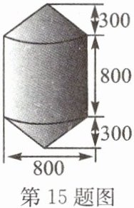 15. 如图,锚标浮筒是打捞作业中用来标记锚或沉船位置的,它的上下两部分是圆锥,中间是一个圆柱(如图,单位:mm). 电镀时,如果每平方米用锌 0.11 kg,要电镀 1 000 个这样的锚标浮筒需要用多少锌(π 取 3.14,精确到 1 kg)?