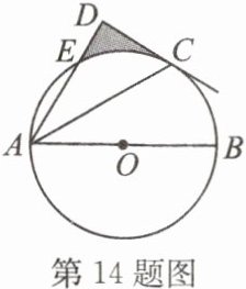 14. 如图,AB 是⊙O 的直径,E,C 是⊙O 上两点,且 $\overset{\frown}{EC} = \overset{\frown}{BC}$,连接 AE,AC. 过点 C 作 $CD \perp AE$ 交 AE 的延长线于点 D.