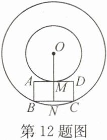 12. 以点 O 为圆心的两个同心圆中,矩形 ABCD 的边 BC 为大圆的弦,边 AD 与小圆相切于点 M,OM 的延长线与 BC 相交于点 N.