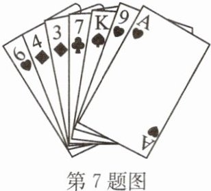 7. 有7张扑克牌如图所示,将其打乱顺序后,背面朝上放在桌面上.若从中随机抽取一张,则抽到的花色可能性最大的是(