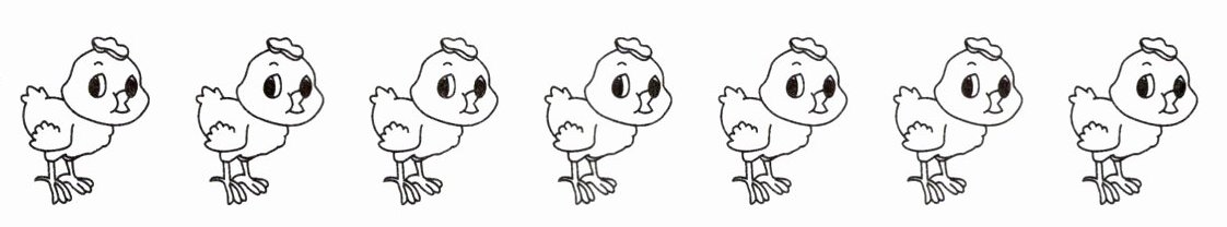 (2)在从左边数的第7只小鸡的上面画“$◯$”。