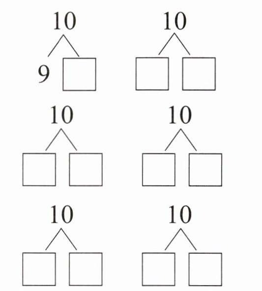 根据数的组成,$10 - 9=1$,所以第一个空填$1$。
