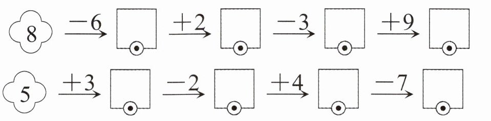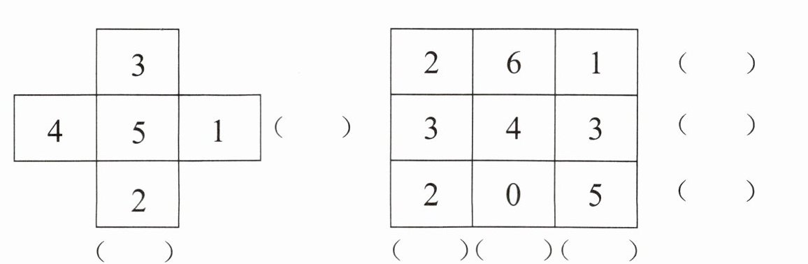 4. 每行、每列上的三个数相加,各得多少?