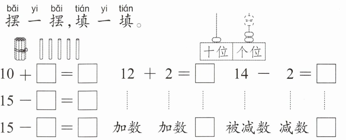 2. (1)一个加数是 10,另一个加数是 9,和是(