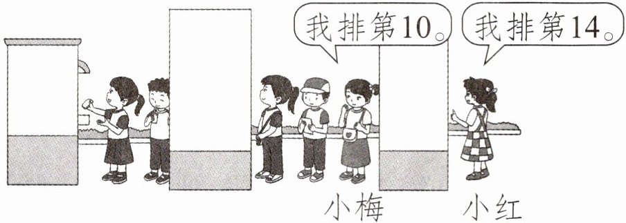 1. 小梅和小红之间有几人?请你画一画,写一写。