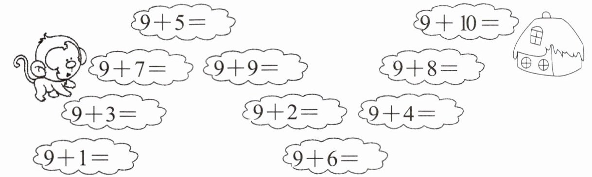 4. 移动9,每次加上卡片上的数,把得数填在相对应的□里。
