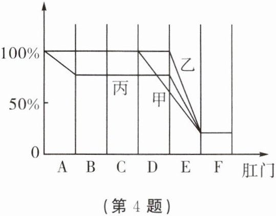 4. 下图表示食物通过人体消化道时淀粉、蛋白质、脂肪被化学性消化的程度,字母表示组成消化道的各个器官,请据图回答下列问题。