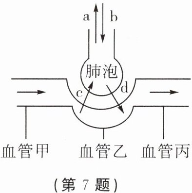 7. 如图为肺泡与血液的气体交换示意图。下列相关说法不正确的是(