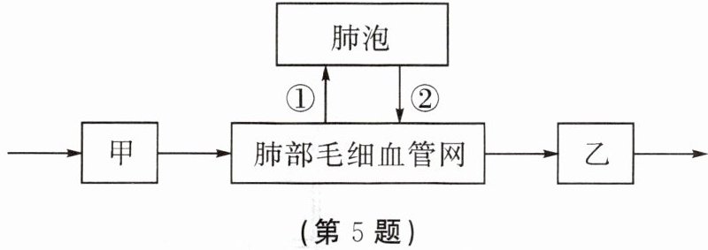 5. 下图为肺泡与血液的气体交换示意图。下列说法不正确的是(