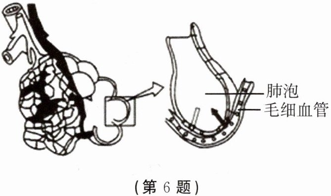 6. 下图为肺泡与血液的气体交换示意图。下列相关叙述错误的是(