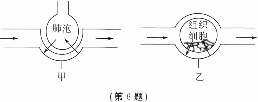6. 下图为人体内的气体交换示意图,请据图回答问题。