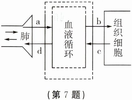 7. 下图是人体呼吸过程的示意图。下列说法错误的是(