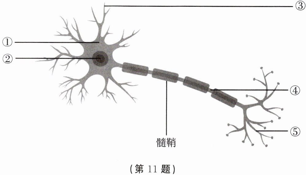 11. 下图为神经元模式图,请填写各个结构的名称。