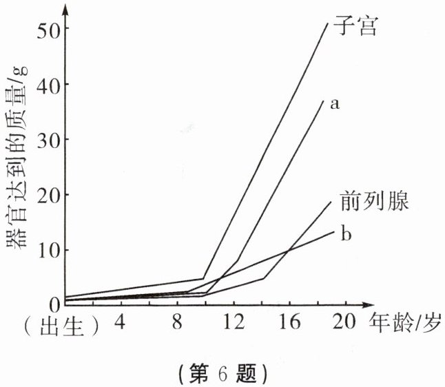 6. 下图表示男性、女性部分生殖器官的发育趋势,请据图回答问题。