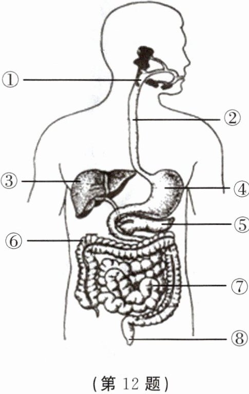 12. 下图是消化系统的模式图,请据图回答下列问题。