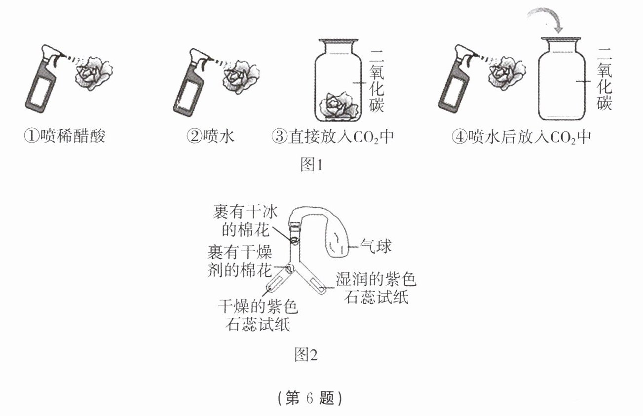 。(7) 将图1实验④中变红的紫花放置在空气中一段时间,红花又变紫,相关的化学方程式为