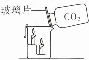 6. 将收集的一瓶二氧化碳气体缓缓倒入放有燃着的蜡烛的烧杯中(如图所示),观察到的现象: