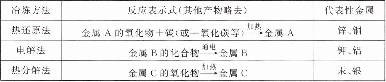(3)金属的冶炼方法与金属的活动性顺序有关(如下表):