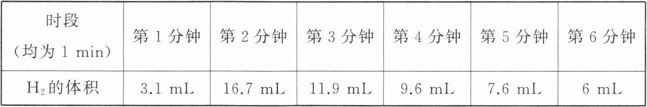 (6)锌与硫酸反应的快慢可能还受温度的影响。 实验验证方法:取质量相等的锌粒分别放入两支试管中,然后分别加入温度不同、体积和溶质质量分数相同的稀硫酸,测量收集等体积的氢气所需要的时间。