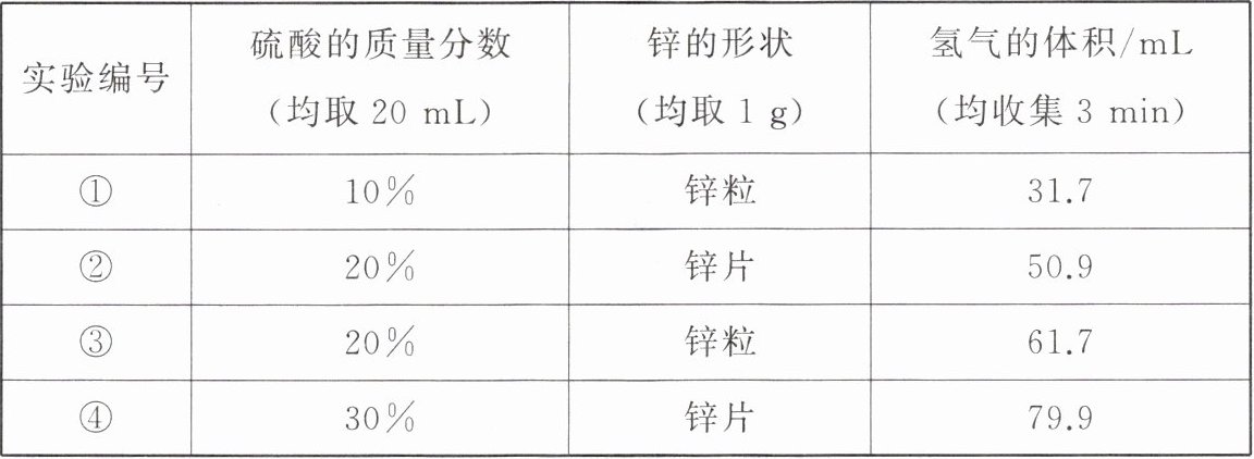 【设计并实验】小兵用不同质量分数的硫酸和不同形状的锌进行如下实验。