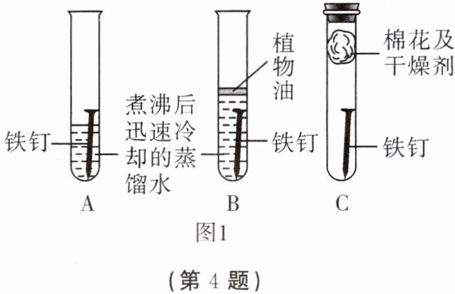 小雅同学用铁钉探究铁生锈与哪些因素有关,设计了如图1所示的实验。